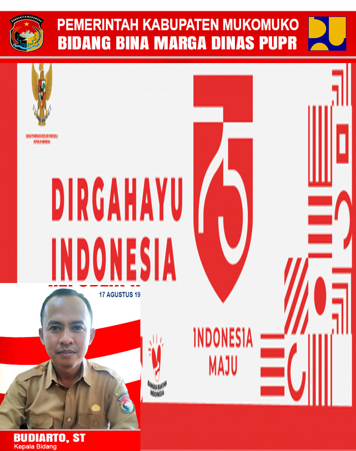 Pemerintah Kabupaten Mukomuko Bidang Bina Marga Dinas PUPR Mengucapkan Dirgahayu Ke-75