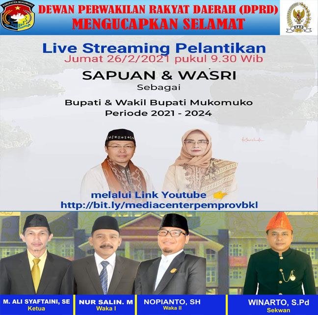 Home / ADVETORIAL / DPRD mukomuko Mengucapkan “Selamat Live Streaming Sapuan-Wasri Bupati Terpilih”