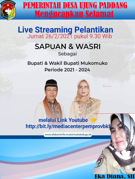 Home / ADVETORIAL / Pemdes Ujung Padang Mengucapkan “Selamat Telah Dilantiknya Sapuan-Wasri Sebagai Bupati Mukomuko”ADVETORIALPemdes Ujung Padang Mengucapkan “Selamat Telah Dilantiknya Sapuan-Wasri Sebagai Bupati Mukomuko”Maret 1, 2021Share this ArticlePrevious ArticlePemdes BMJ Ucapkan Selamat Kepada Sapuan-Wasri Bupati TerpilihNext ArticleDinas Komunikasi Dan Informatika Kabupaten Mukomuko Mengucapkan “Dirgahayu Mukomuko Ke-18”Redaksi Related Posts DPRD Mukomuko tetapkan Perda Lindungi Penyandang Disabilitas Maret 14, 2026 Waka I DPRD Mukomuko Wisnu Hadi, SE Ucapkan Selamat atas Pelantik ... Maret 14, 2026 DPRD Mukomuko dorong peran guru untuk tingkatkan kualitas pendidi ... Maret 14, 2026 Tinggalkan BalasanAlamat email Anda tidak akan dipublikasikan. Ruas yang wajib ditandai *KomentarNama Email Situs Web Δ