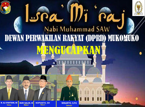 Home / ADVETORIAL / Dewan Perwakilan Rakyat Daerah (DPRD) Mukomuko Mengucapkan “Selamat Memperingati Isra’ Mi’Raj Nabi Muhammad SAW”ADVETORIALDewan Perwakilan Rakyat Daerah (DPRD) Mukomuko Mengucapkan “Selamat Memperingati Isra’ Mi’Raj Nabi Muhammad SAW”Maret 8, 2021Share this ArticlePrevious ArticleDPRD Mukomuko Ucapkan “Selamat Memperingati Hari Isra’ Mi’Raj Nabi Muhammad SAW”Next ArticleDPRD MM Gelar Rapat Paripurna Penyampaian Pandangan Umum Raperda No 13 Tahun 2006Redaksi Related Posts DPRD Mukomuko tetapkan Perda Lindungi Penyandang Disabilitas Maret 14, 2026 Waka I DPRD Mukomuko Wisnu Hadi, SE Ucapkan Selamat atas Pelantik ... Maret 14, 2026 DPRD Mukomuko dorong peran guru untuk tingkatkan kualitas pendidi ... Maret 14, 2026 Tinggalkan BalasanAlamat email Anda tidak akan dipublikasikan. Ruas yang wajib ditandai *KomentarNama Email Situs Web Δ