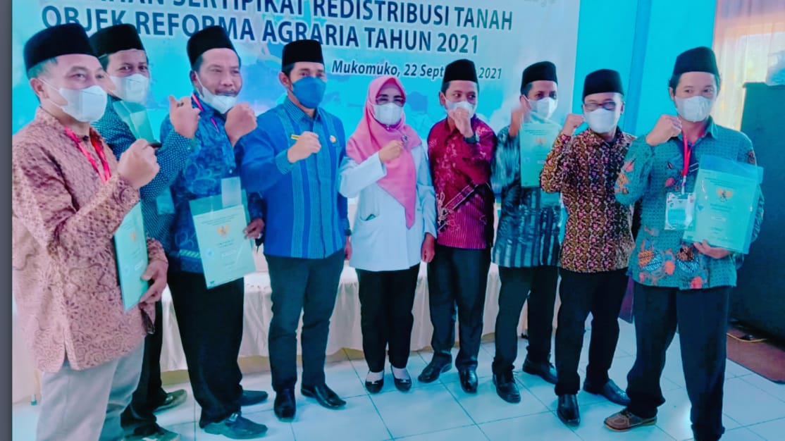 “Sekarang masyarakat khususnya Kabupaten Mukomuko sudah mendapatkan kepastian, mudah-mudahan dengan ini dapat membuat masyarakat menjadi tentram dan tentunya kinerja kita juga akan menjadi terukur, penyerahan sertifikat redistribusi tanah tahun anggaran 2021 merupakan bentuk kepedulian Pemerintah Indonesia yang secara legalitas untuk kepastian hukum agar kepemilikan tanah semakin tertib,”ujarnya.