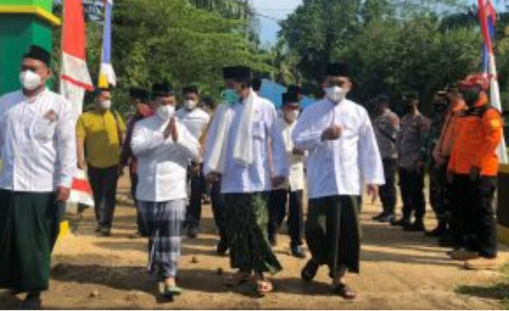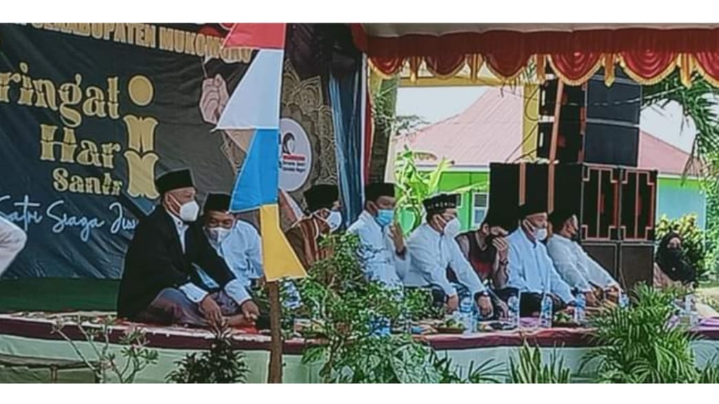 Trendfokus.com–Bupati Mukomuko, H. Sapuan, SE,MMAk,CA,CPA memimpin apel Peringatan Hari Santri Nasional (HSN) 2021 yang diselenggarakan di Pondok Pesantren (Ponpes) Al-Iman di Desa Tirta Makmur, Kecamatan Air Manjuto, Kabupaten Mukomuko, Provinsi Bengkulu, Sabtu, 23 Oktober 2021.