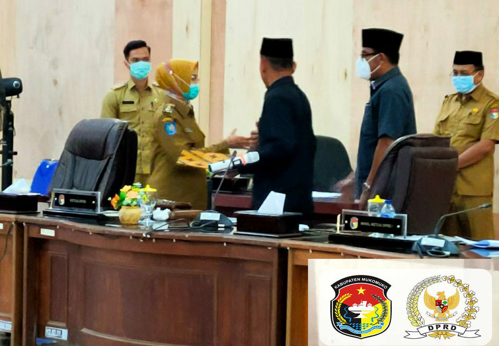 Penyampaian LKPJ langsung disampaikan Bupati Sapuan dipimpin oleh Ketua DPRD Mukomuko, Ali Saftaini.