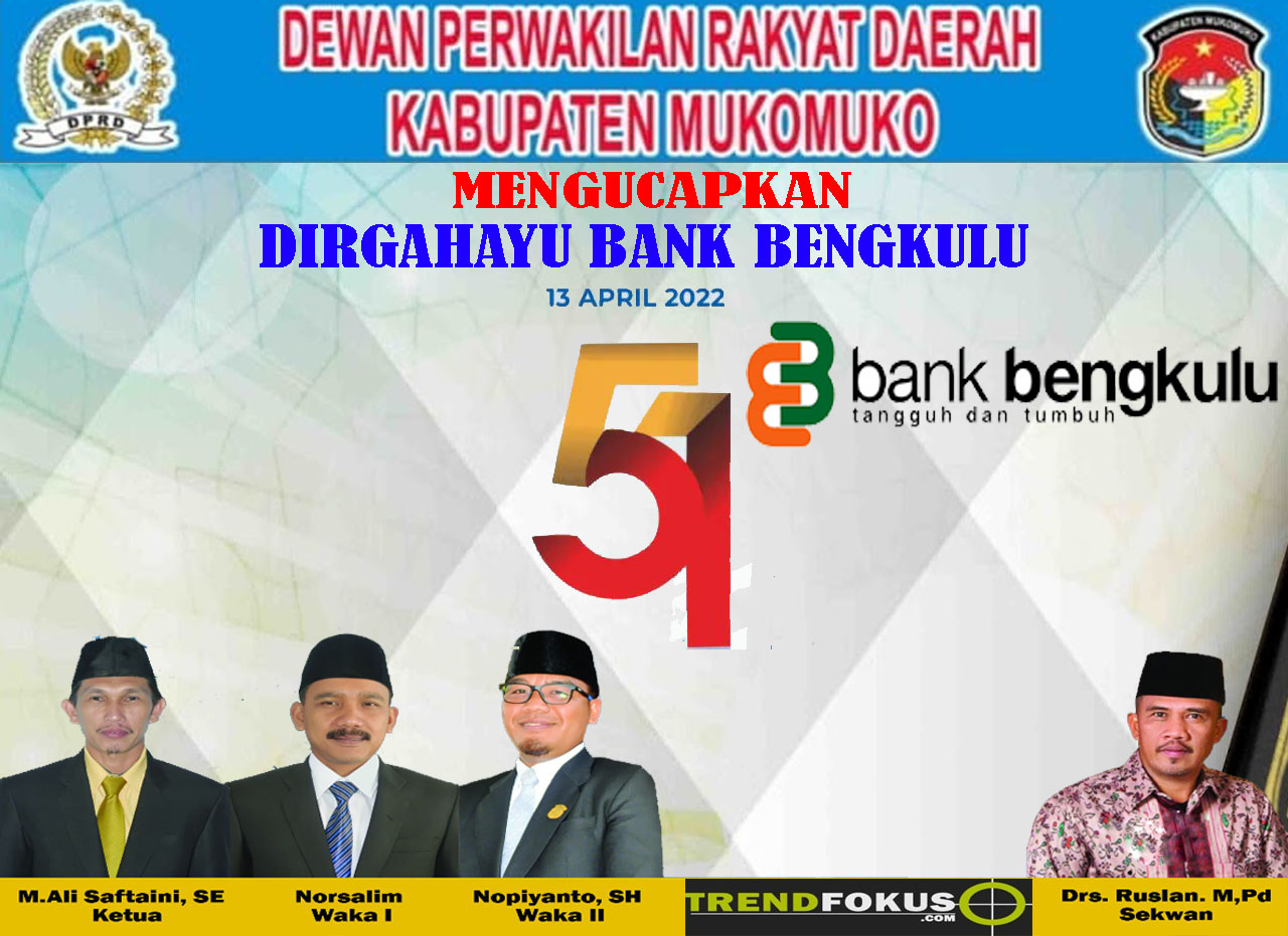 Home / ADVETORIAL / Dewan Perwakilan Rakyat Daerah (DPRD) Kabupaten Mukomuko Mengucapkan “DIRGAHAYU Bank Bengkulu Yang Ke-51”ADVETORIALDewan Perwakilan Rakyat Daerah (DPRD) Kabupaten Mukomuko Mengucapkan “DIRGAHAYU Bank Bengkulu Yang Ke-51”April 11, 2022 Share this ArticlePrevious ArticleDewan Perwakilan Rakyat Daerah (DPRD) Kabupaten Mukomuko Mengucapkan “DIRGAHAYU TNI AU”Next ArticleBupati Mukomuko Sapuan Bersama Istri dan BPOM Sidak Pasar Ramadhan Takjil Aman Di KomsumsiRedaksi Related Posts DPRD Mukomuko tetapkan Perda Lindungi Penyandang Disabilitas Maret 14, 2026 Waka I DPRD Mukomuko Wisnu Hadi, SE Ucapkan Selamat atas Pelantik ... Maret 14, 2026 DPRD Mukomuko dorong peran guru untuk tingkatkan kualitas pendidi ... Maret 14, 2026 Tinggalkan BalasanAlamat email Anda tidak akan dipublikasikan. Ruas yang wajib ditandai *KomentarNama Email Situs Web Δ