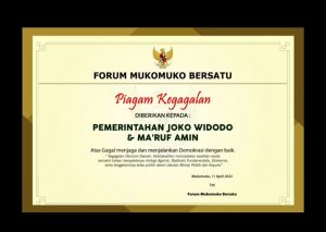 “kita dari aliansi Forum Mukomuko Bersatu mengucapkan terimaksih kepada pihak Legislatif yang telah bersedia menemui kami, sekaligus bersedia menerima piagam kegagalan Presiden Joko Widodo dan Ma’ruf Amin dan rilis tuntutan aksi agar dapat segera diteruskan kejenjeng yang lebih tinggi. Kepada pihak keamanan dari Kodim 0428 dan Polres Mukomuko kami juga ucapkan terimakasih, yang telah melakukan pengamanan dalam aksi jni, sehingga aksi hari ini berjalan kondusif, aman dan tertip,” tutup Toha
