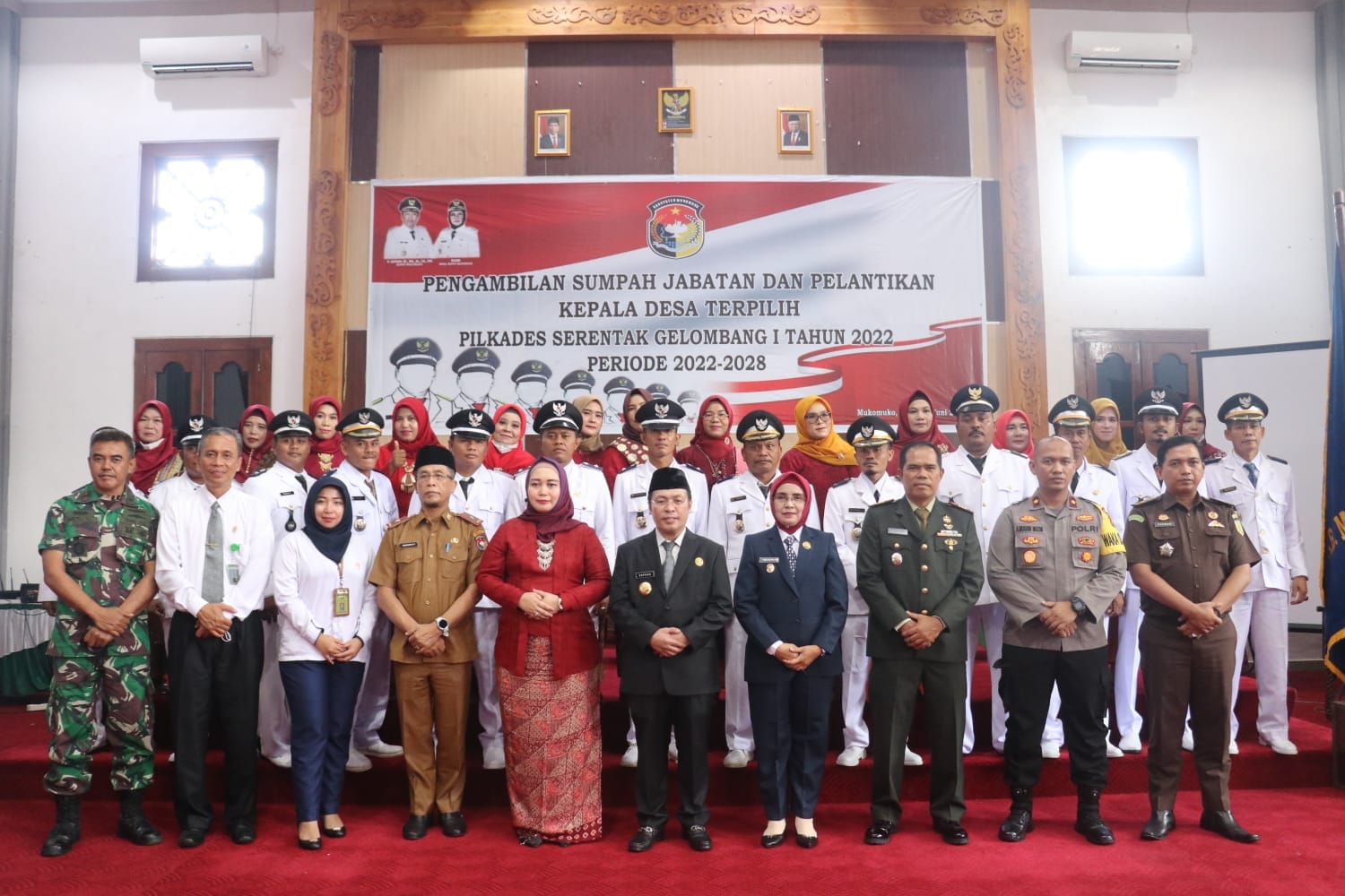 Trendfokus.com-Bupati Mukomuko H.Sapuan siang tadi, Senin (13/6) di Balai Daerah melakukan pengambilan sumpah/janji dan pelantikan Kepala Desa (Kades) terpilih sebanyak 64 orang tahun 2022. Turut hadir dalam pelantikan Wakil Bupati Mukomuko, Wasri, Pj Sekda Mukomuko, Yandaryat P, Ketua TP.PKK Mukomuko, Ny Nurliyana Habsjah Sapuan, Kepala Forkopinda Mukomuko, Kepala Organisasi Perangkat Daerah (OPD) Mukomuko, para Camat Se-Kabupaten Mukomuko dan tamu undangan lainnya.