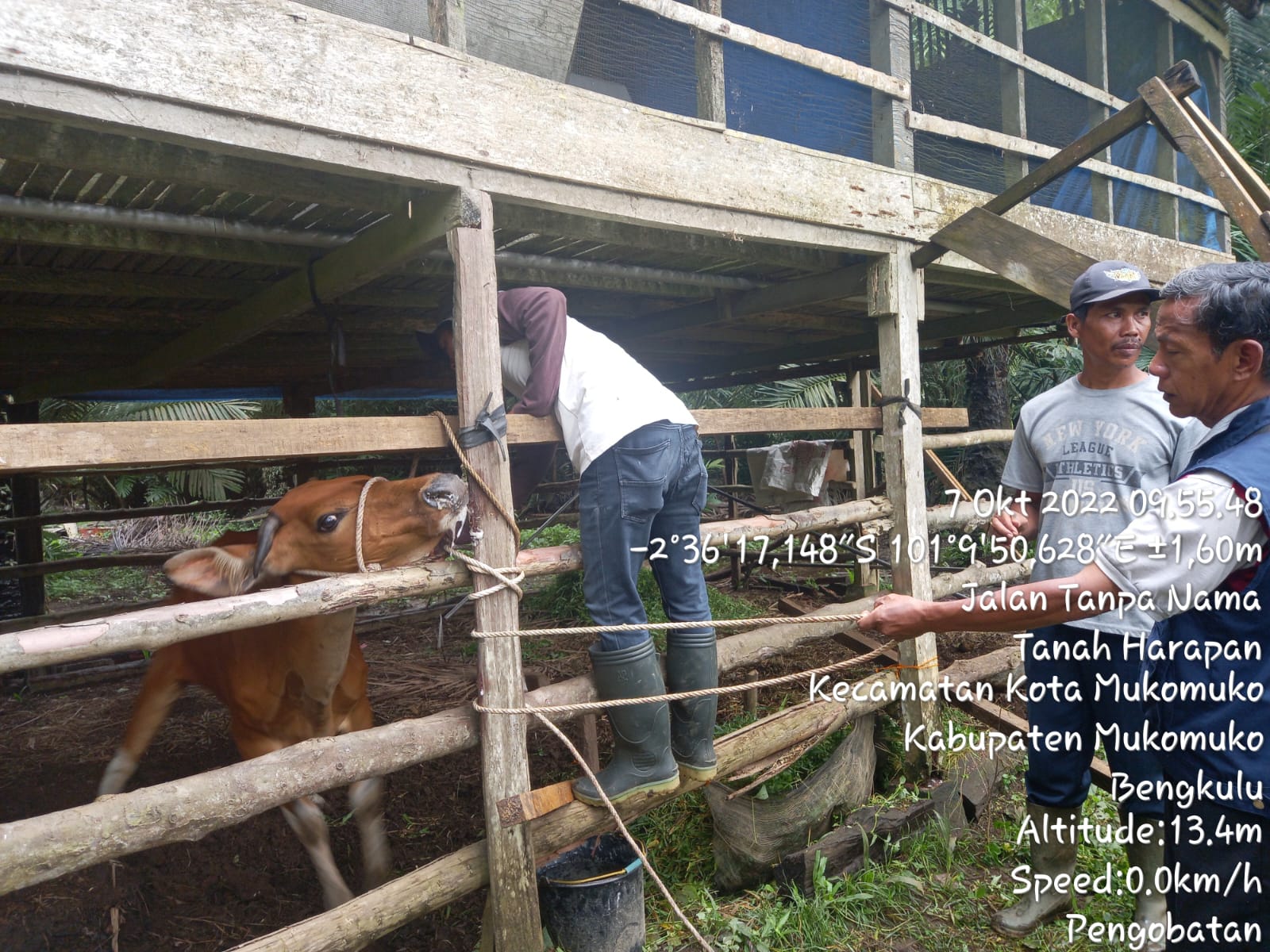 Trendfokus.com-Dinas Pertanian Kabupaten Mukomuko mulai turun melakukan pengobatan massal dengan sasaran ternak terjangkit Penyakit Mulut dan Kuku (PMK). diawali di Desa Tanah Rekah dan Desa Tanah Harapan, Kecamatan Kota Mukomuko, Jumat (7/10). Langkah tersebut sebagai salah satu upaya encegah dan menekan penyebaran PMK di daerah ini.