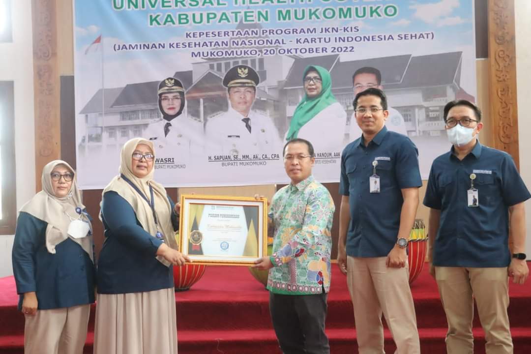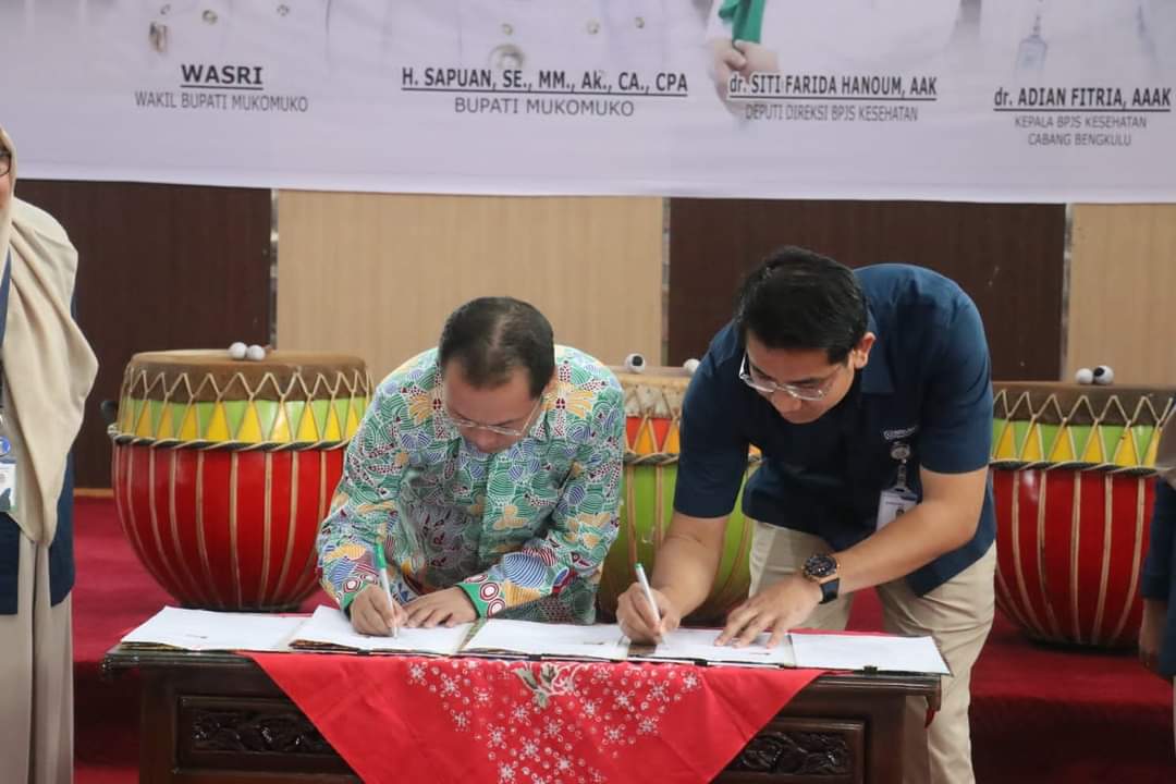 Bupati Mukomuko H.Sapua dalam kesempatan tersebut menyampaikan apresiasinya atas kerjasama yang dilakukan Pemerintah Kabupaten dalam hal ini Dinas Kesehatan Mukomuko dengan BPJS Cabang Bengkulu.