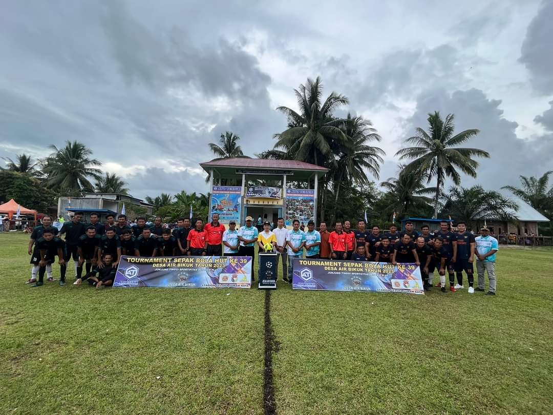 “harapan kami, sinergi antar semua unsur dapat menyukseskan turnamen sepak bola dalam rangka HUT Desa Air Bikuk ke-39 ini,”lanjutnya