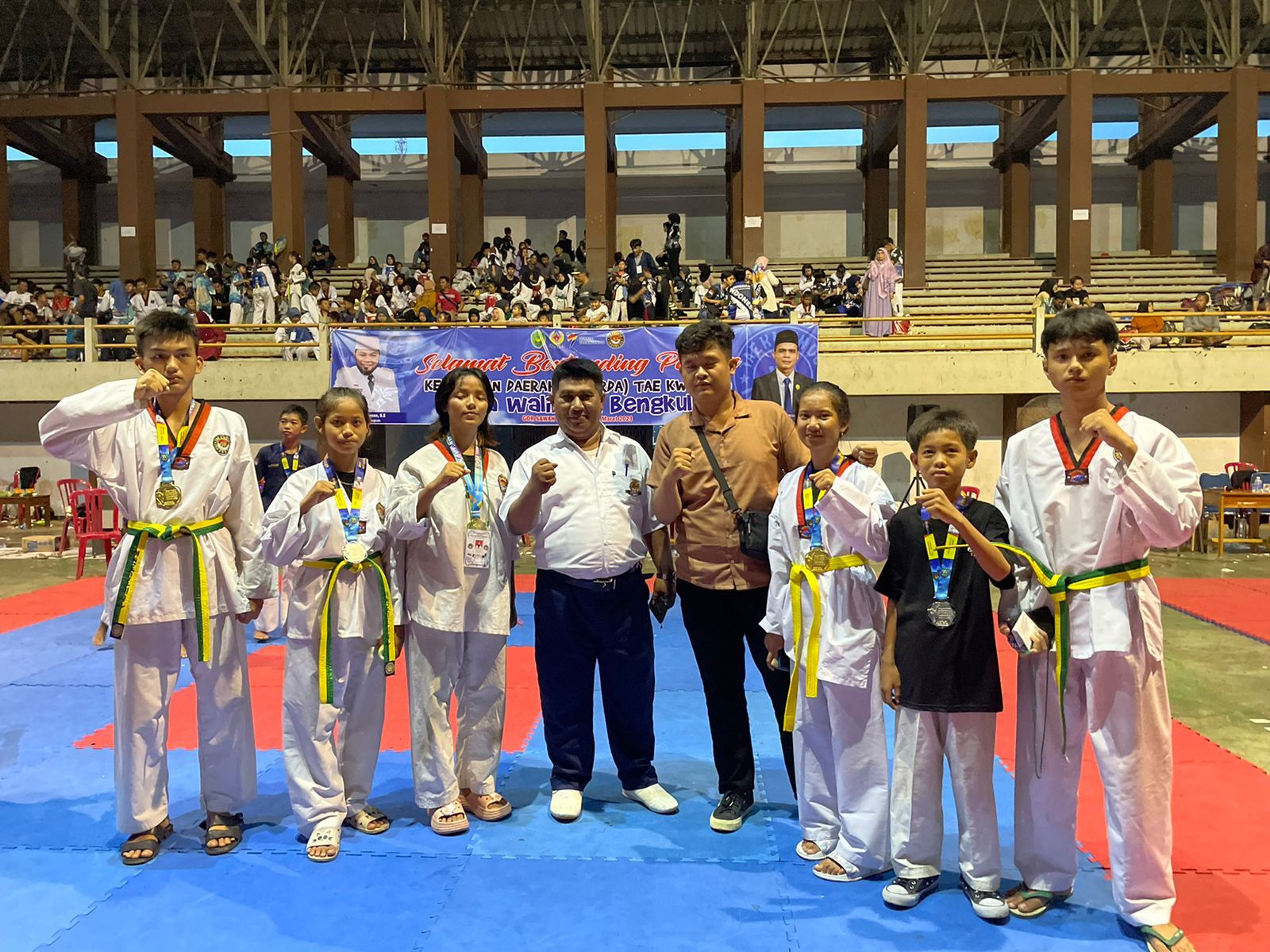 Trendfokus.com-Cabang olahraga Taekwondo Kabupaten Mukomuko, meraih 6 mendali, 3 Mas dan 3 Perak, dalam kejuaraan piala Walikota Bengkulu di Gor Sawah Lebar, Kota Bengkulu, Minggu (19/3).