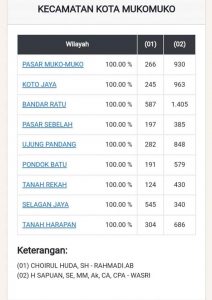 “Kita lihat jumlah pemilih Sapuan Wasri khusus Kecamatan Kota. Ada sebanyak 6.566 DPT memilih no urut 02 Sapuan Wasri. Sedangkan untuk khusus Kecamatan Ipuh memiliki suara 5.049 dan Kecamatan Penarik, sebanyak 7.437 suara. Artinya khusus di Kecamatan Kota kalau dipresentasekan Sapuan Wasri memiliki lumbung suara dan dinyatakan menang telak, terus apa kontribusinya untuk kota?,” ungkapnya.