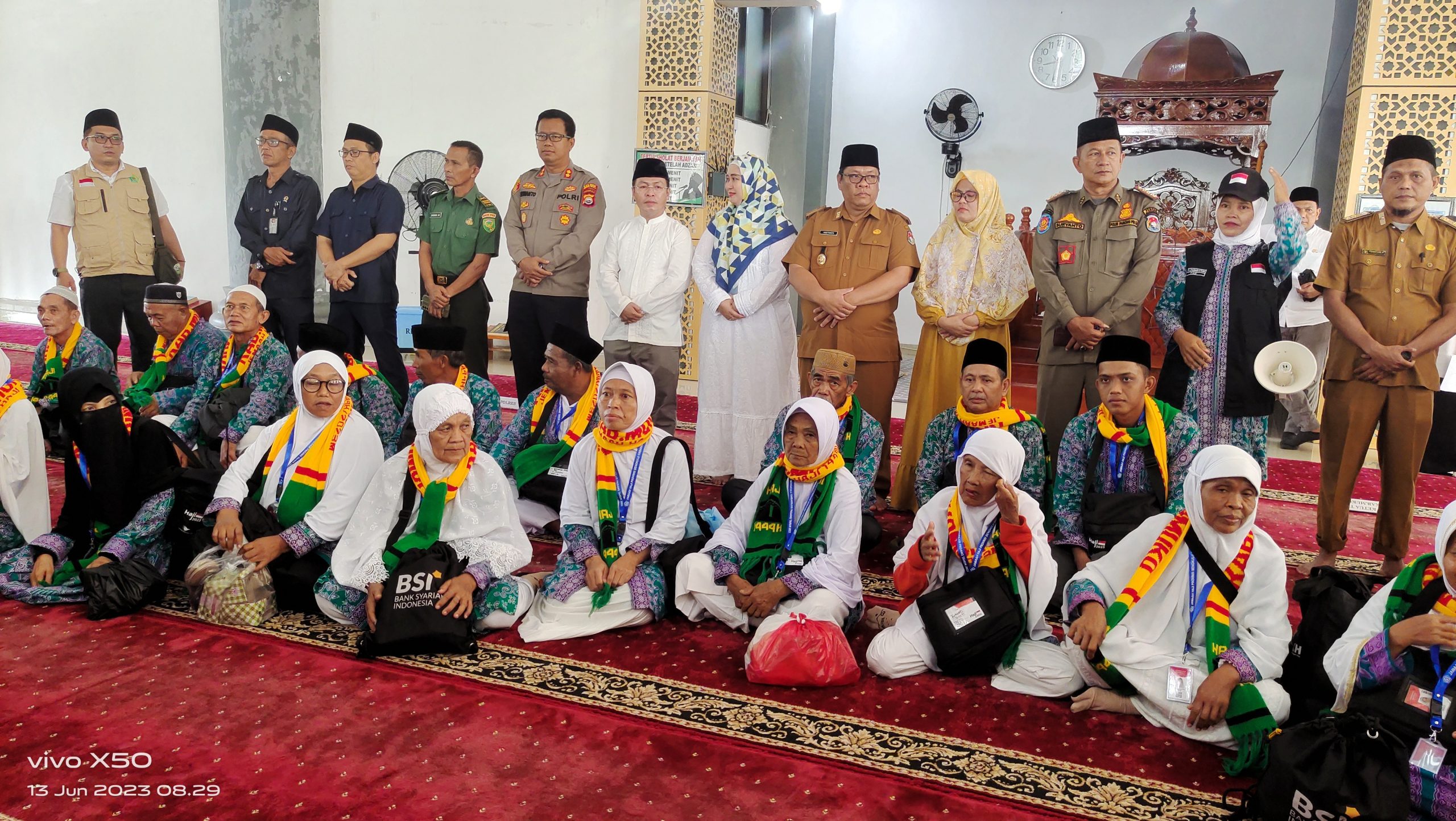 TRENDFOKUS.COM- Cuaca Pagi yang cerah di bumi Mukomuko, memantapkan niat masyarakat untuk hadir mensukseskan pelepasan Jemaah Calon Haji 2023 ke tanah suci makkah. Sebanyak 169 calon jemaah haji kloter pertama asal Kabupaten Mukomuko dilepas langsung oleh Bupati Mukomuko, H Sapuan, di Masjid Agung Mukomuko. Selasa (13/6).