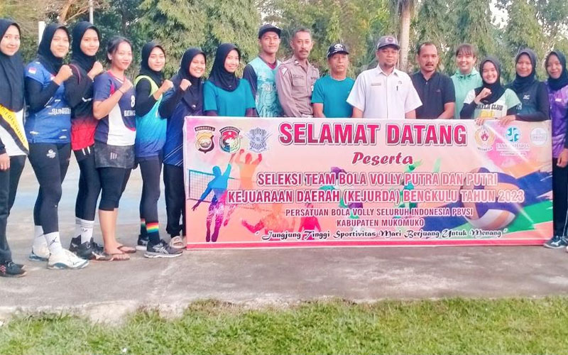 TRENDFOKUS.COM-Pengurus Kabupaten Persatuan Bola Voli Seluruh Indonesia (Pengkab PBVSI) Mukomuko menggelar seleksi tim bola voli putra dan putri di lapangan Pemda Kabupaten Mukomuko, dengan jumlah pengikut sebanyak 100 orang dalam rangka persiapan kejuaraan daerah (Kejurda) Bengkulu Utara pada Juni mendatanag.
