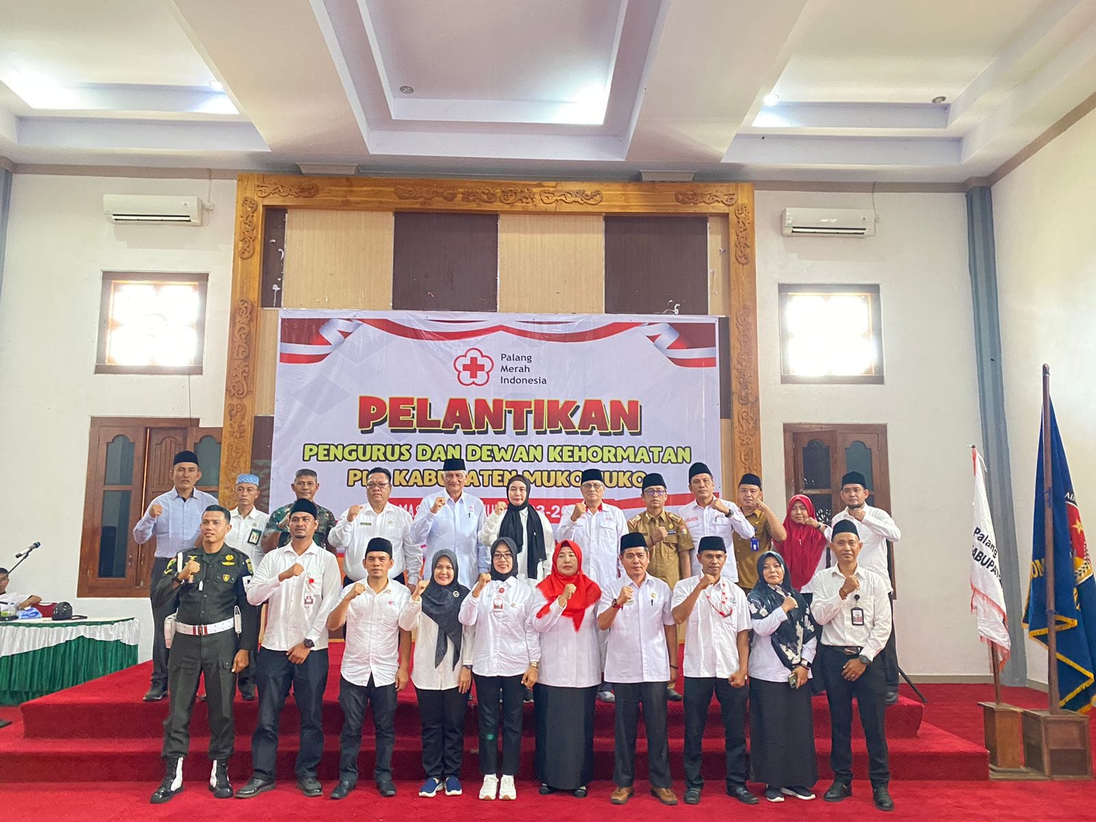 Pelantikan diawali pembacaan Surat Keputusan (SK) dari PMI Bengkulu. Isinya tentang Dewan Kehormatan (DK) dan pengurus PMI Kabupaten Mukomuko masa bakti 2023-2028.