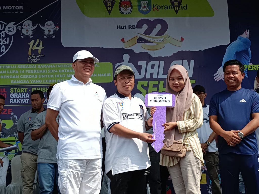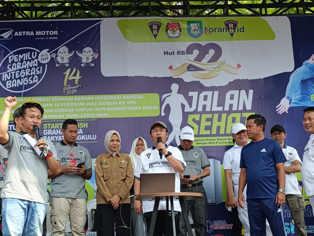 TRENDFOKUS.COM-Pagi tadi, Sabtu (2/9/2023), Bupati Mukomuko H. Sapuan, SE., MM., Ak., CA., CPA., CPI mengikuti Jalan Sehat dalam rangka HUT Ke-22 Harian Rakyat Bengkulu bertempat di Lapangan Kantor Graha RB Kota Bengkulu. Turut hadri dalam jalan sehat tersebut Gubernur Bengkulu.