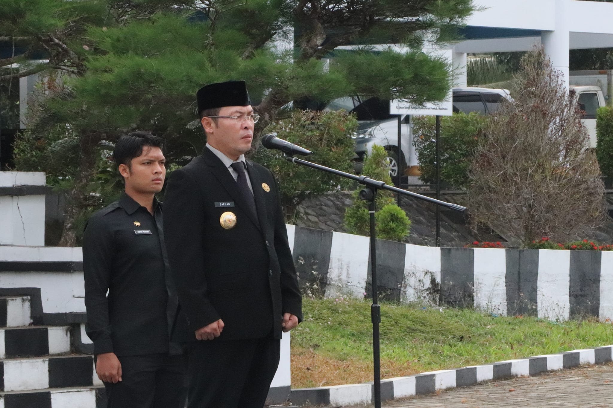 TRENDFOKUS.COM-Bupati Mukomuko H. Sapuan, SE., MM., Ak., CA., CPA., CPI bertindak sebagai Inspektur Upacara dalam Upacara Peringatan Hari Kesaktian Pancasila di Halaman Kantor Pemerintah Daerah Kabupaten Mukomuko, Minggu (1/10/2023).