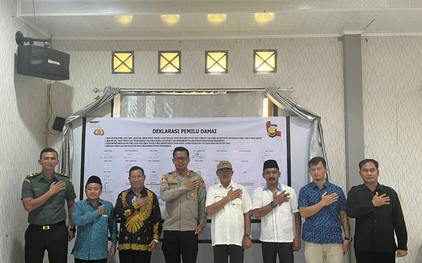TRENDFOKUS.COM-Polres Mukomuko Polda Bengkulu telah menggelar deklarasi Pemilu 2024 damai aman dan kondusif. Kegiatan deklarasi itu berlangsung di aula Mapolres Mukomuko, Rabu (10/10). Deklarasi damai ditandai dengan penandatanganan secara bersama dari semua pihak-pihak. Mulai dari partai politik atau peserta pemilu, penyelenggara pemilu, forkopimda, organisasi, forum, MUI, BMA dan lainnya.