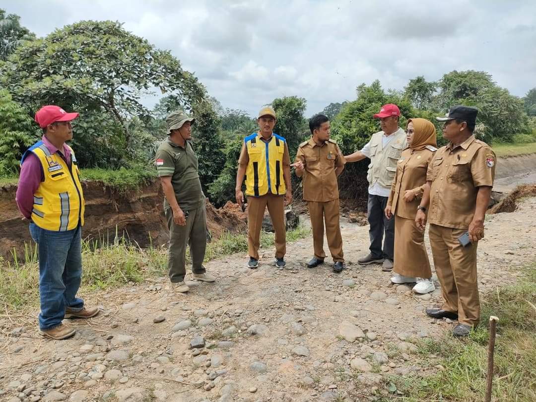 TRENDFOKUS.COM-Wakil Bupati (Wabup) Mukomuko, Wasri bersama Kepala Dinas Pekerjaan Umum dan Penataan Ruang (PUPR) Kabupaten Mukomuko, Apriansyah, ST, MT. Turun gunung, untuk mengecek lokasi jebolnya bangunan jaringan daerah irigasi (DI) manjunto kanan tepatnya di BMKN 2 dan BMKN 3 Desa Lalang Luas Kecamatan V Koto, Senin (20/11).