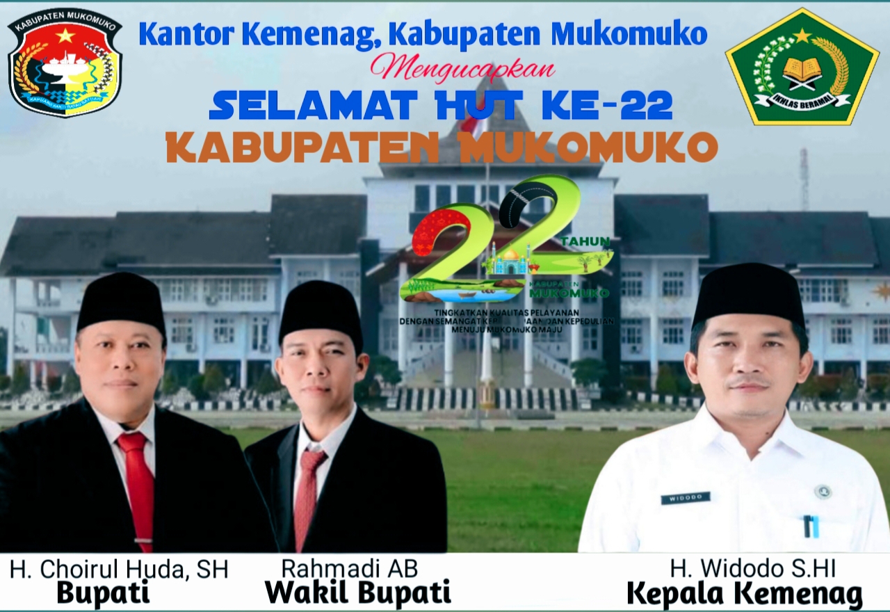 Kantor Kemenag Mengucapkan “Selamat HUT ke-22 Tahun Kabupaten Mukomuko”