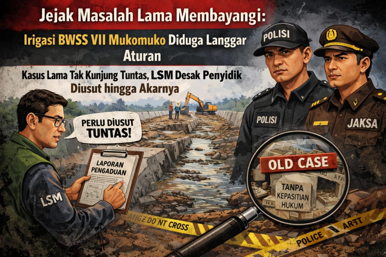 Mukomuko, Bengkulu. — Proyek irigasi di wilayah Kabupaten Mukomuko yang berada di bawah kewenangan Balai Wilayah Sungai Sumatera VII (BWSS VII) kembali menuai sorotan tajam bahkan ekstrem dari berbagai elemen masyarakat; dugaan pelanggaran aturan dan penyimpangan pelaksanaan proyek tidak hanya menyangkut pekerjaan terbaru, tetapi juga membuka kembali jejak persoalan lama yang hingga kini belum menemukan kepastian hukum. Jum’at, (2 Januari 2026).