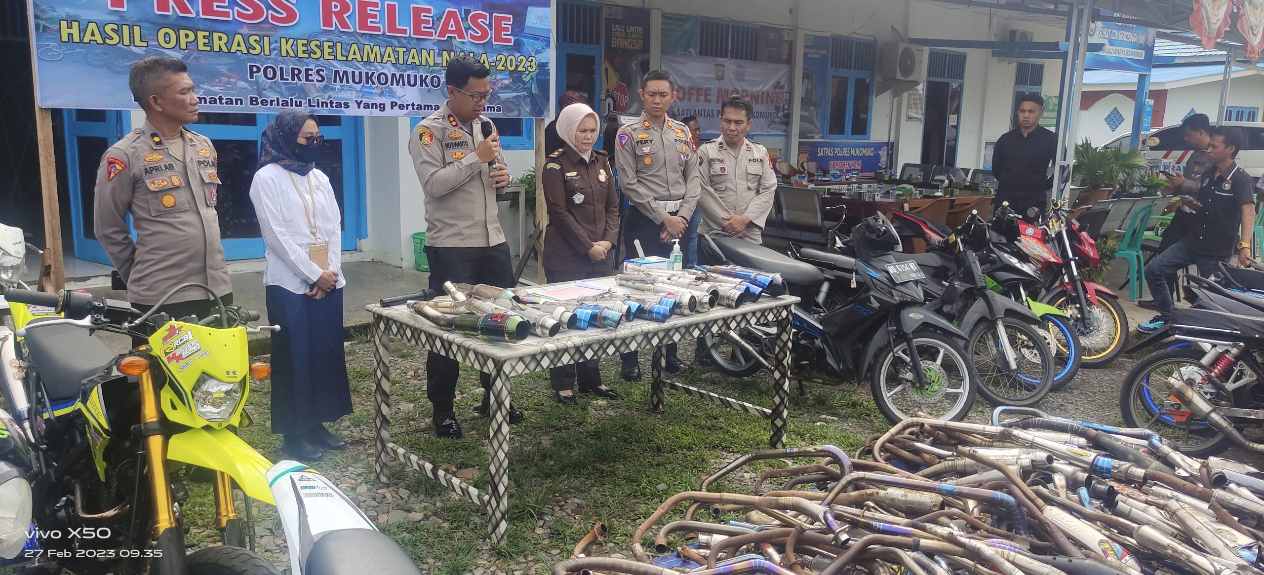 Trendfokua.com-Satlantas Polres Mukomuko gelar press release hasil Operasi Keselamatan Nala 2023. Press release dipimpin langsung oleh Kapolres Mukomuko, AKBP. Nuswanto, SH, S.IK, MH, Senin (27/2) di ...