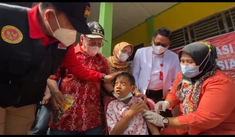 TRENDFOKUS.COM-Bupati Mukomuko H. Sapuan memberikan semangat dan menghibur anak peserta vaksinasi usia 6-11 tahun di SD 05 Kecamatan Air MAnjutto, Kabupaten Mukomuko. Dengan kedatangan orang nomor sat...