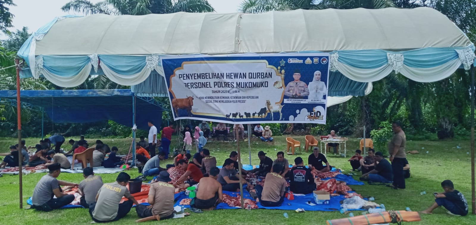 TRENDFOKUS.COM-Momen Hari Raya Idul Adha 1446 H kali ini kembali memberikan berkah bagi masyarakat sekitar Kantor Jajaran Polres Mukomuko Pada Jumat, 6 Juni 2025, Polres Mukomuko melaksanakan penyembe...
